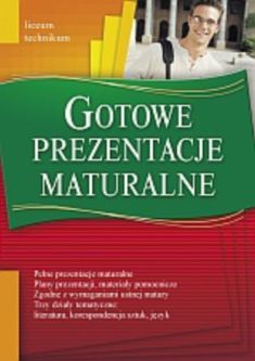 U dołu okł. : pełne prezentacje maturalne, plany prezentacji, materiały pomocnicze zgodne z wymaganiami ustnej matury, trzy działy tematyczne : literatura, korespondencja sztuk, język.