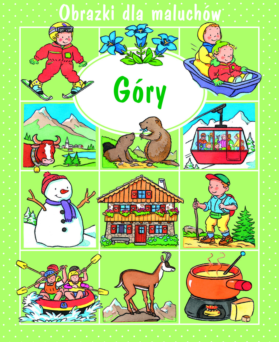 Książeczka dla najmłodszych, która rozbudzi w nich ciekawość świata i pozwoli im poznać górską przyrodę. W tej serii znalazły się m.in. tytuły: Boże Narodzenie, Przyroda, Wieś, Zwierzęta, Kolory, Ciało, Cyfry, Góry, Dzieje biblijne, Przeciwieństwa, Las, Chrońmy naszą planetę.[źródło okładki i opisu http://www.swiatksiazki.pl/ksiazki/gory-obrazki-dla-maluchow-emilie-beaumont-3725291/?gclid=CNftiO323ckCFQTjGwod1TkIQQ.